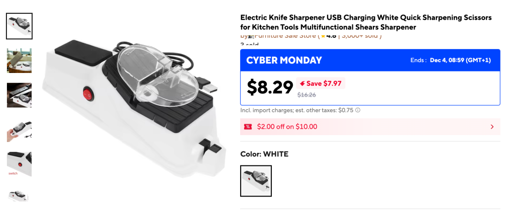 The Besynersharp Pro Electric Knife Sharpener has been aggressively popping up on almost every website this Black Friday period. I have seen its ads on eBay, Amazon, and even on TikTok.