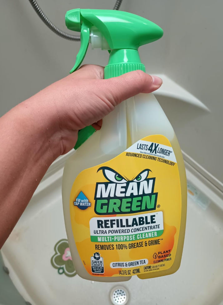 Amazing citrusy scent and love that it’s refillable. I also like that you can easily fill one side with water to help dilute the solution