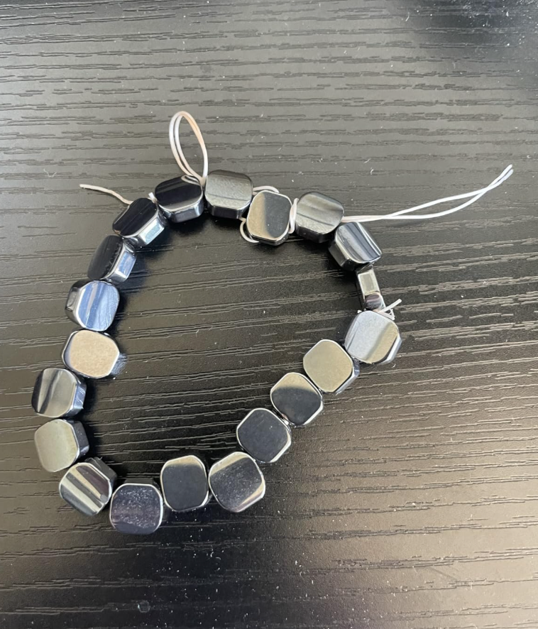 The beads were chipped and uneven, the string was flimsy, and the whole thing felt incredibly light. Real hematite, as I later learned, is supposed to be heavy because it’s an iron-based stone. This one felt closer to plastic than metal. Even the shine looked artificial, more like painted gloss than natural polish.