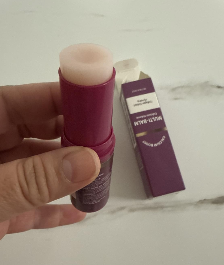 According to ads, Lovera Calcium Volume Multi Balm is an “anti-aging multi-use stick” that restores firmness, smooths fine lines, and gives the skin a youthful glow. It supposedly contains ingredients like calcium complex, collagen, glutathione, and elastin, which are all fancy names that sound science-y and convincing.