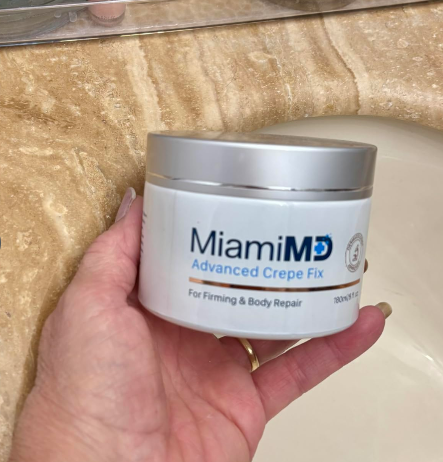 Advanced Crepe Fix is a skincare cream by Miami MD that targets crepey skin. The brand markets it as a tightening and smoothing treatment made for mature skin that has lost elasticity. It is meant to hydrate deeply, improve texture, reduce the appearance of fine lines, and give the skin a firmer feel with continued use.