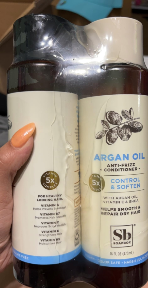 I picked the Biotin set because anything with biotin gives me hope during my postpartum hair struggles. I grabbed the Argan set because my hair can soak up moisture like a sponge and still beg for more. Both arrived together in the same Amazon package.